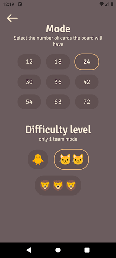 At the beginning of the game, there will be either 12, 18, 24, 30, 36 or 42 cards (depending on your selection) on the board with different words. The top bar indicates which team starts the game.