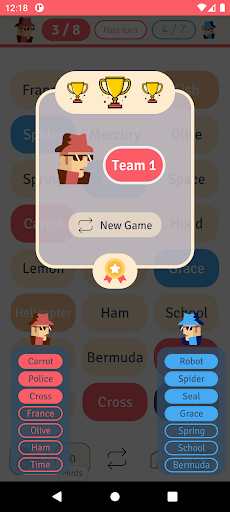 It is possible to play either in one team mode, so you will decide only the red team spymaster and the game will autoplay the blue team or in two teams mode, in this case you will need to choose a team spymaster for the blue and the red teams.