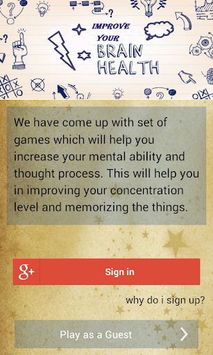 The application contains 5 games specially designed to keep your brain sharp and active. It will help you increase your mental ability and thought process. This will help you in improving your concentration level and memorizing the things easily