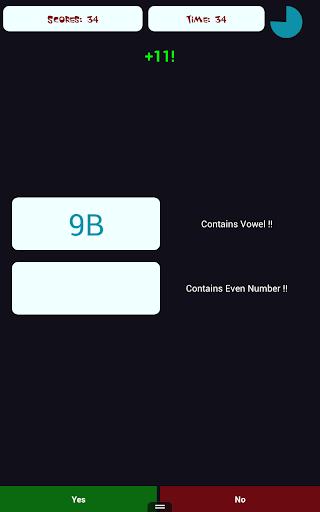 Brain Tack: The game contains two boxes and you have to match and unmatch by reading the contents. A character and a number will be displayed to you in either of the box. You need to click YES if Upper Box contains Vowel or lower box contains EVEN number. If not, Press NO.