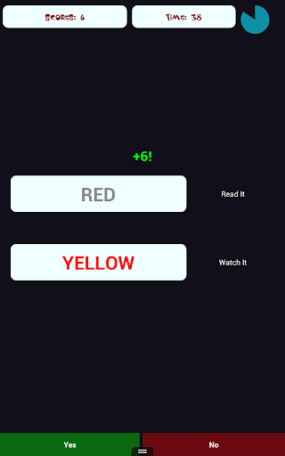Color Match: The game contains two boxes and you have to match and unmatch by looking at the contents. You have to match whether the color of text appears in the lower box is same to the color name displayed in Upper box. If yes click ‘Match’ else ‘Not Match’.