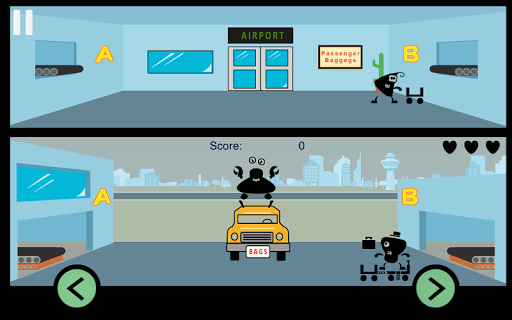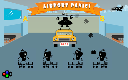 Airport Panic! Fast, frantic game play - catch the bags thrown by your Crabby Boss and get them to the passenger in one piece. Time your throws right and you won't lose a life.
