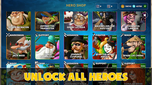 Collect hilarious everyday MOBA (multiplayer online battle arena) heroes: an angry bingo champion granny mage who bakes a killer cake, a warm-hearted math professor turned butcher skilled in close combat battle in the battle arena, a grumpy old-timer marksman in his invention - a speeding wheelchair equipped with lots of guns, and others.