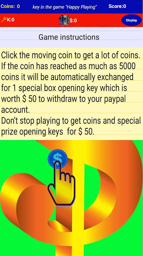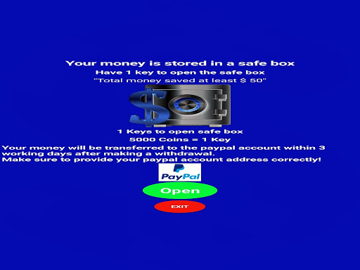 If the user gets 5000 coins, these coins will be automatically exchanged for 1 {one} box opening key containing $ 50 and can be withdrawn to the user's paypal account.