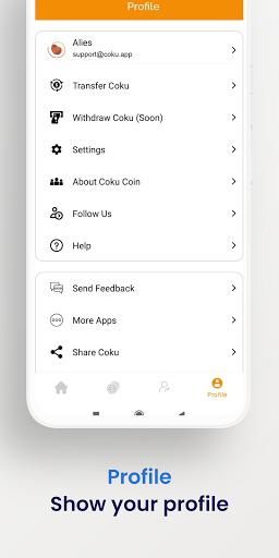 Hit the mining button to win in the Coku app. Your mining speed and how much you will earn per hour will appear in your mining details. You do not need to stop in the application. It is enough to start mining. Coku does not use batteries and energy. Earn Coku coins by mining!