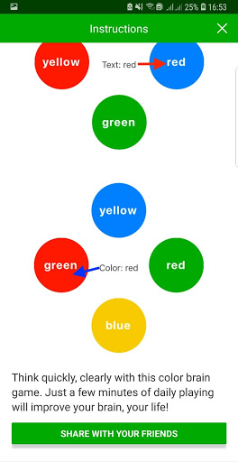 Think quickly, clearly with this color brain game. Just a few minutes of daily playing will improve your brain, your life!