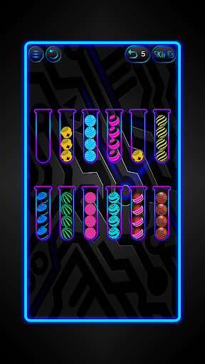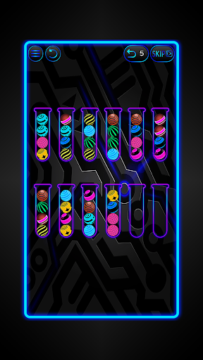 Sort it 3d colorful are very easy to play, try to sort the neon colored balls in the tubes until color ball hit the same color stay in the same tube.