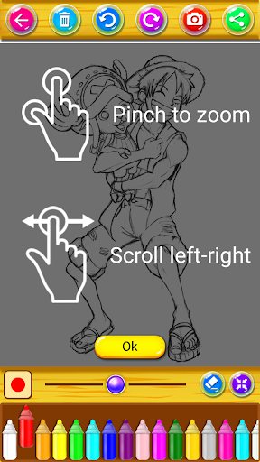 Anime Piece Coloring Book is very easy to use and even kids can color these nice and high quality anime drawings.
