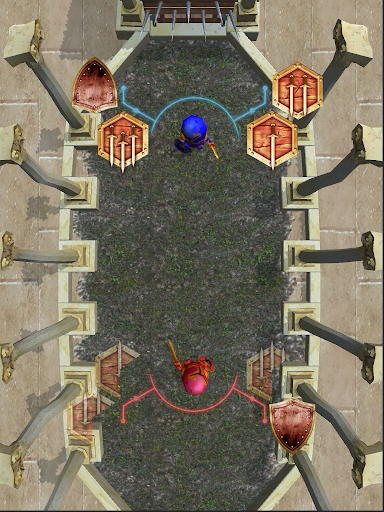 Select to cover behind your shield or one of three attack options while your friend is running to you sword in hand and the arena trying to squash you with a boulder - with spikes.