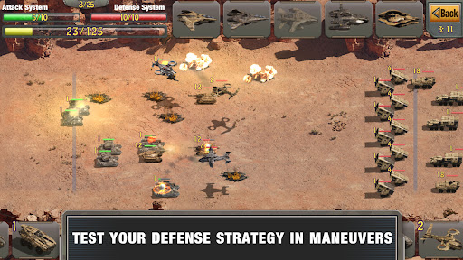 Commanders can attack each other or defend the enemy attacks and get coins and medal, they can choose from a large number of units and upgrade them and use those units in battles.