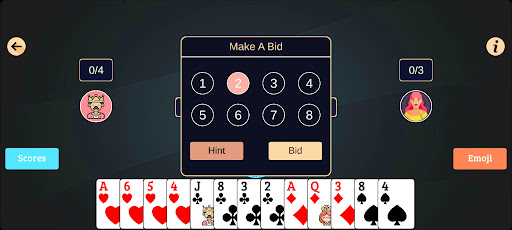 Callbridge is similar to callbreak card game with slight differences in some rules. This is also a trick-taking card game. In this card game whoever scores 30 or more points first will win the game.