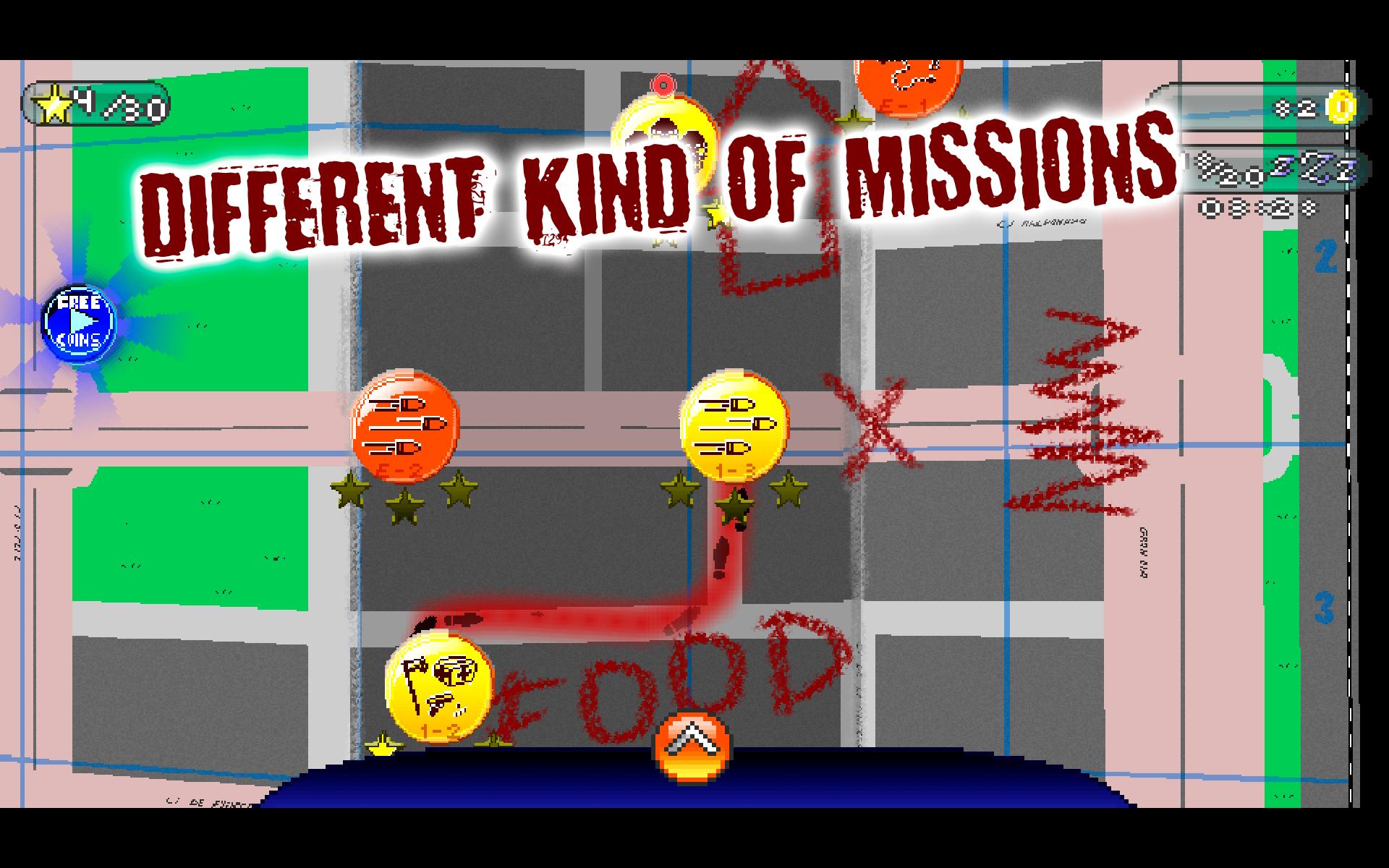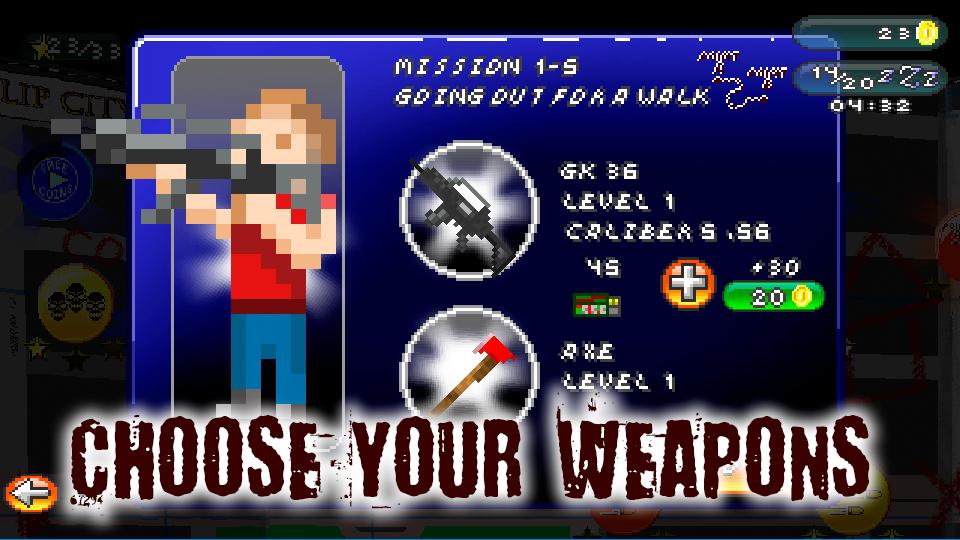 ✔️Story mode: escape the city of Leylip, 3 chapters, 12 stages each chapter (plus 1 extra stage for the end!). Achievements in each stage! Try to get all and earn free weapons! Follow the story in this big and unique pixelated adventure.