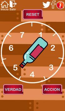 La botella se detendrá en un punto determinado, señalando a una persona, en la pantalla del móvil aparecerán dos botones: el de Verdad y Acción, la persona a la que señala la botella deberá decidir que botón se ha de apretar, diciendo Verdad o Acción.