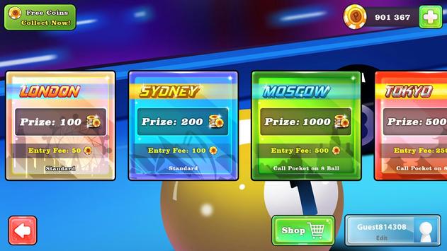 Come and join in world pool tournament or have fun with your friends. Defeat all opponents and collect unique cues through the various locations with different table.
