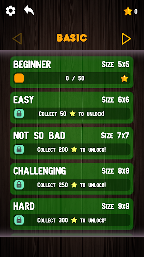 The game presents Number link puzzles: each puzzle has a grid of squares with colored bulbs occupying some of the squares. The objective is to connect bulb of the same color by drawing 'wire line' between them such that the entire grid is occupied by pipes. However, pipes may not intersect. Difficulty is determined by the size of the grid, ranging from 5x5 to 14x14 squares.