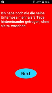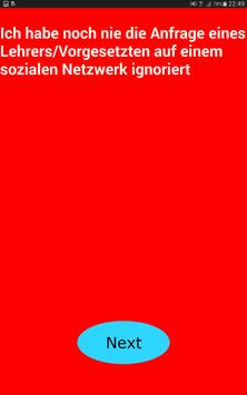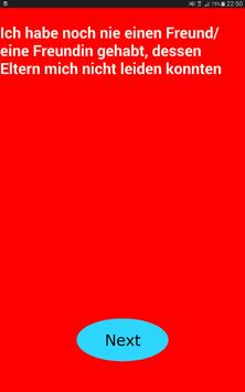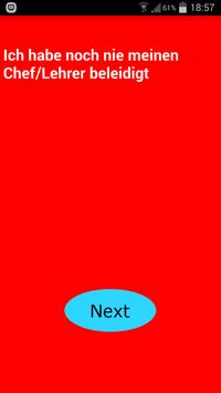 Das Prinzip ist ganz einfach. Man braucht nur ein paar Freunde und wenn man will etwas Alkohol (Auch lustig ist es mit völlig fremden). Dann liest jemand in der Gruppe einen Satz den die App anzeigt vor. Wenn jemand die Sache schon einmal gemacht hat, muss er einen Kurzen trinken. Das war's! Ganz einfach.