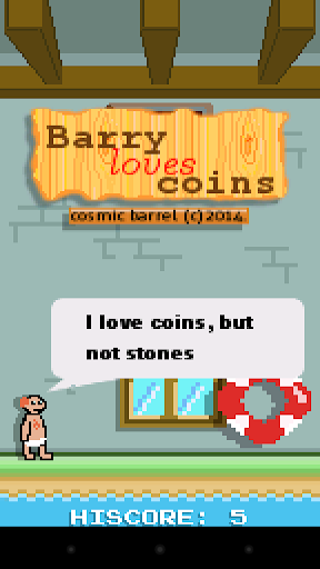 Barry Loves Coins is a game like the eighties old video games, and as such, it's a very easy to play but it is very addictive. however, it is not easy to make a high score. Do you want to check it yourself?