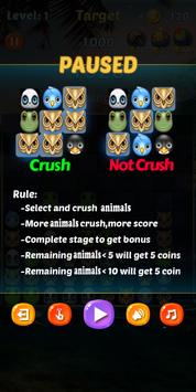 - Tap two or more animals of the same color to crush animals.