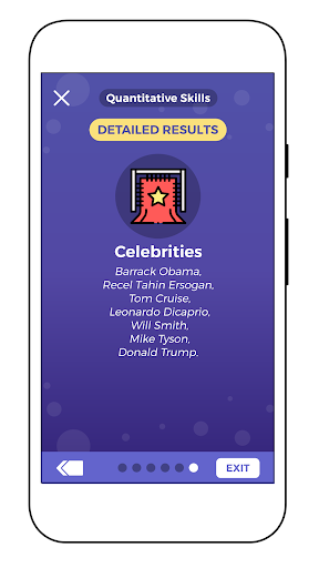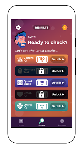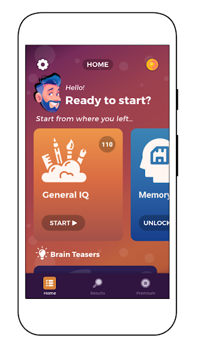 At the home screen, you will be able to track your results in the results section. The results section shows your latest IQ score and the detailed IQ results. IQ test: Measure your IQ can also be considered as a Brain Test as the questions really is meant to calculate and improve your brain smartness. The brain is shaped by neurons that fire every single time you challenge them. Your IQ score is determined by how fast you could work your brain. With the brain teaser section, you will be able to train your brain. With the IQ tests, you will be able to calculate your individual IQ intelligence: emotional IQ to memory IQ.