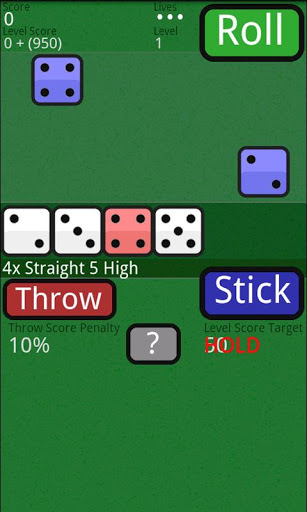 A game of chance and skill. Build a high score by selecting the best scoring dice combinations. Knowing when to 'stick' when the level target score has been reached is the key to success. Achievements and hidden hands to discover.