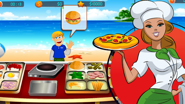 Take the crazy fate of mobile restaurant in your hands. Keep your customers happy by prepping everything from Burgers, Fries, Pizza; Take orders, tap and slide to seat customers, serve piping hot dishes and collect tips to upgrade Cooking Game fever your mobile Kitchen Restaurants!