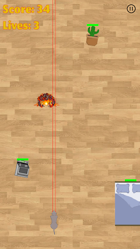 Destroy as many objects as possible with your laserbeams in your master's flat to take revenge for the years of confinement, but without hitting your head too often or the game is over! Get the furniture on fire and eventually to explosion. Watch pleasurably how everything in the flat is flying around as you blow up the valuable furnishing of your master. Use power-ups like boosted laserbeam, fart-explosion and beast-mode to gain even faster a higher score and create the greatest possible destruction.