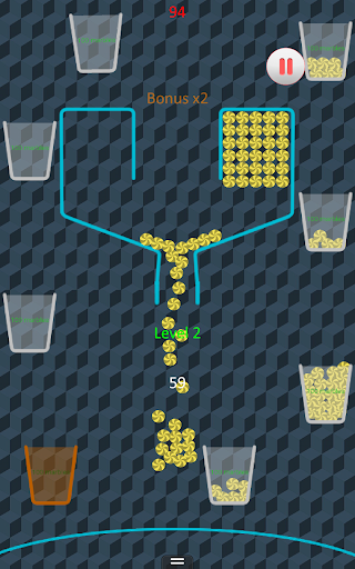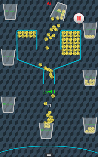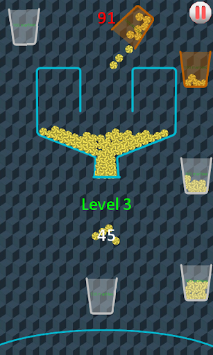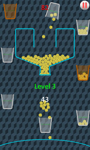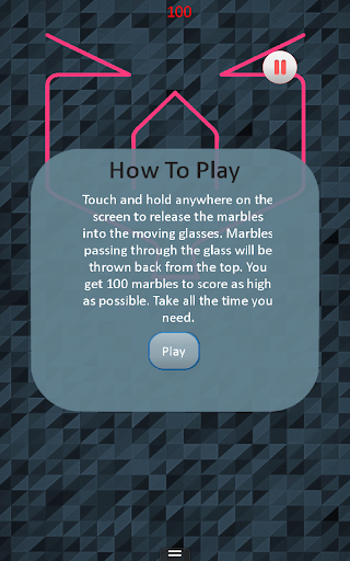 The goal of the game is to fill moving cups with falling marbles by opening the gate of the pot by touching on the screen. For each marble you manage to get through the glass you're rewarded with a different amount of points, depending on its color. If the marbles misses the glass, it disappears.