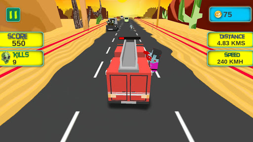 I HATE HIGHWAY ZOMBIES is an endless 3D toonic action game that combines both traffic racing and zombie smashing game play. It's a never ending survival game. The challenge is to survive against the zombie attacks on the blocky highway and race between the traffic vehicles without hitting. You will be rewarded with gold coins on smashing zombies and can unlock the powerful vehicles (Car, SUV, Sedan, Retro Car, Forklift, Police Car, Tow Truck, Heavy Duty Truck and Fire Engine) and environments.