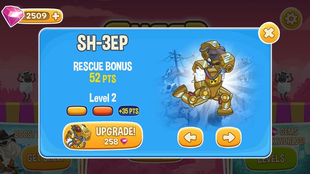 Wait a minute - did we just mention points? Some of the sheep are holding gems and gems are really worth it! With gems you might unlock Special Sheep and there are 12 of them. And each sheep got 2 upgrades available - each of them having unique sheepalicious looks and points boost ups. Gameplay has been enriched with "Levels" - which enable players to unlock new worlds and earn even more gems!
