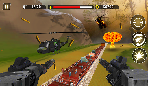 The US Army Transport Game is a unique addition to train simulator games. The critical strike of the attacker force will hold train shooter from conveying army weapons in the WW2 battleground. But you need to be an actual army train transporter and meet the US army soldier requirements in this train games. The army veterans need heavy munitions, sniper guns, fighting tanks, weaponry, support funds and other army stuff. US army soldiers are all set to defend from the frontline battleground to accomplish the final victory in World War II but is in need of soldier supplies. So make it as secure army transit as possible in the US Army train game. As a proficient army train shooter protect and defend the weapon consignment. Show that there is no other US army train operator and shooter FPS better than you who can bring the WW2 transport duty safely and on time. Make express train move harmlessly through critical zones of off-road rail tracks.