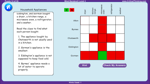 Students carefully analyze each Mind Benders® story and its clues, identifying logical associations between people, places, and things. The key is to start with the most obvious associations, then deduce less obvious associations until everything finally fits together.