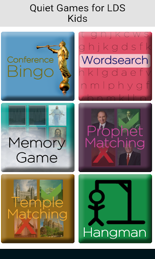 Here are the 6 games: Bingo, Word Search, Memory, Prophet Matching, Temple Matching, and Hangman