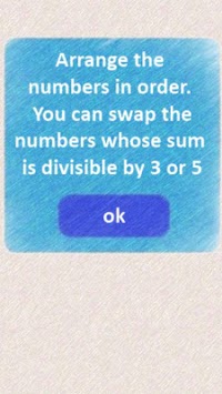 This game require a important mental skill. Place the numbers in order. In this case, you can only swap the numbers whose sum is divisible by 3 or 5.
