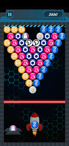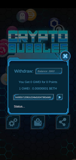 In this DeFi themed bubble shooter game you simply match 3 or more of the same DeFi tokens to burst the Crypto Bubbles and win 10 Gwei for each bubble, that's 0.00000010 $ETH per bubble. The more bubbles you burst the more $ETH you win.