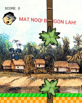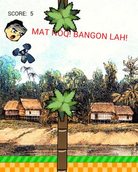 This is Mat Noq's first ever video game! Help Mat Noq in his adventure by jumping through all the pokok kelapa around the kampong! If you can get the highest score among everyone, YOU WIN! >:D