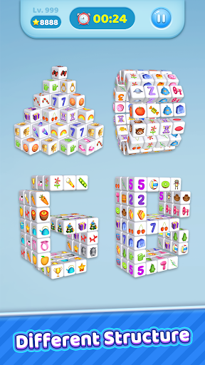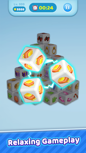 This 3D Cube Match shows the super creative gameplay by combining many classic board games, likes Majhong, tile connect, 3D match to a rubiks cube.