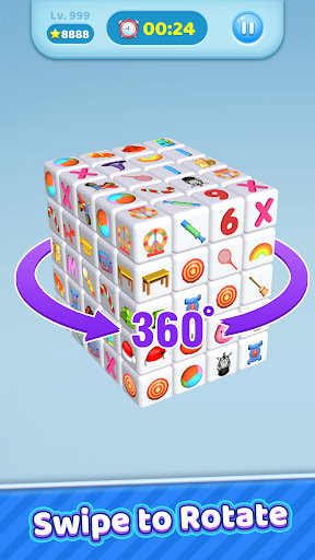 3D Cube Match is a unique and fashionable triple match puzzle game. All tiles are grouped to a rubiks cube, and you can swipe to rotate the cube by 360 degrees.