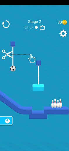 You will be challenged to cut the rope and let the ball hit the object. After the ball hit all object you can continue to the next level.