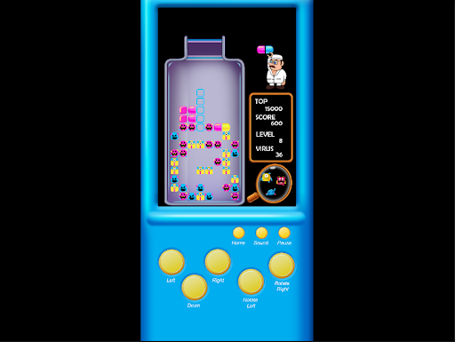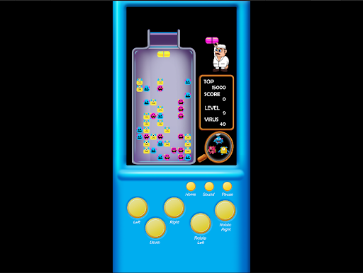 The player manipulates each capsule as it falls, moving it left or right and rotating it such that it is positioned alongside the viruses and any existing capsules. When four or more capsule or viruses of matching color are aligned in vertical or horizontal configurations, they are removed from play. A game which is accomplished by eliminating all viruses from the playing field. A game over occurs if capsules fill up the playing field in a way that obstructs the bottle's narrow neck.