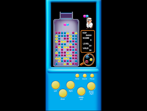 Players can select the degree of when starting difficulty. The initial level chosen is a value between zero and twenty that determines the number of viruses to clear, and the three game speed options change how fast the capsules fall in the bottle.