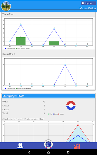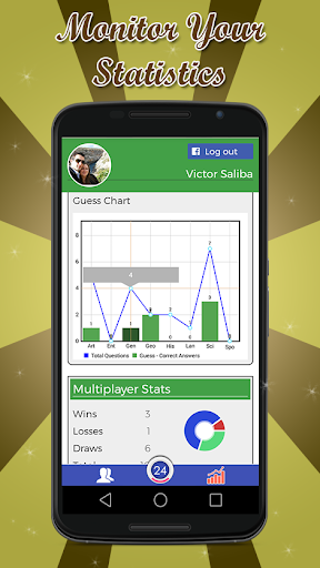 With this feature you can compare your scores of every game you have played with your friends. Share your achievements with your trivia buddies and try to beat their records!