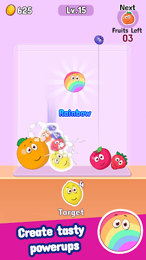 Progressive Difficulty: As you advance, the game becomes more challenging, requiring you to merge fruits into varieties higher than those in previous levels to achieve victory.