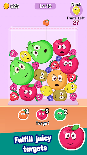 Strategically drop fruits in the jar. When two identical fruits come together, they combine to form a larger fruit. Merge your way up to exotic, BIGGER fruits and complete objectives!
