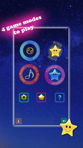 In the game, you will rescue stars in the sky by drawing and connecting them to form beautiful constellations, or by tapping and turning them into nice melodies. It is featured with 4 different game modes for you to enjoy, including the "Constellation" mode with 30 levels from easy to difficult for players to discover; the music-oriented "Infini-Music" mode in which melodies are automatically generated with each tap; the challenging "Arcade" mode with a bunch of special items that greatly boost the fun; and the simple to start "Classic" mode.