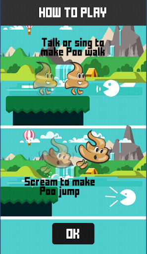 Make a lot of noise to force the Poop to run and jump or stay quiet to control the poop moves slowly.