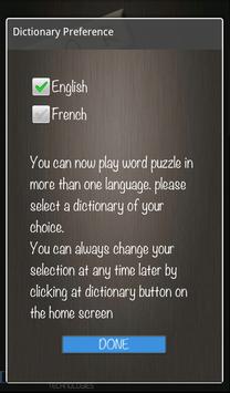 Word puzzle is an addictive game that challenges your vocabulary and improves your spellings, all with loads of fun!!!! Different grid sizes make it suitable for learners as well as serious gamers. Pick your preferred language and enjoy the game making english or french words.