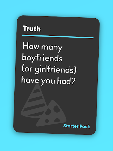 Truths and dares are divided into 8 very different categories, there is over 900+ Truths or Dares you can get. If you don't want to talk about or do the dirty, sexy, couples stuff you simply don't use those decks. If you want a full-on crazy night you simply remove the normal decks.