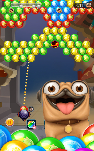 The curious thing about Pug Pop Bubble Shooter 2 lies in the fact that the bubbles are shot by a cute pug. The controls present no difficulty at all: you simply have to tap the screen at just the right moment. And don't forget to rescue the various pug puppies that are scattered among the bubbles!