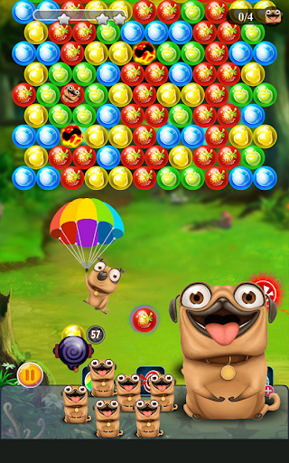 Pug Pop Bubble Shooter 2 is to the classic and most addictive bubble pop game for FREE, match 3 colors and clear levels, where you have to rescue dogs that are trapped in colored bubbles by popping them.