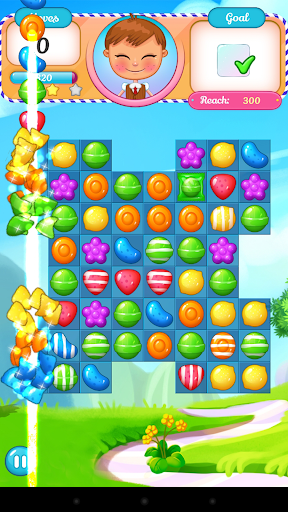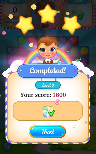The gameplay is identical to other similar games for Android. Whenever you match three candies of the same kind, you make them disappear, when you match four you create a special kind of jelly, and when you match five you create an even more powerful one.